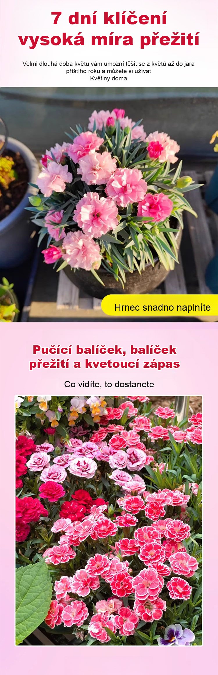 Semena karafiátů v mnoha barvách, ručně zasazené mají větší význam jako dárek~